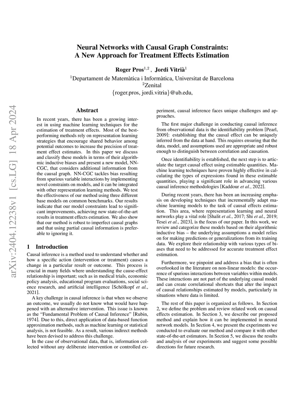 In recent years, there has been a growing interest in using machine learning techniques for the estimation of treatment effects. Most of the best-performing methods rely on representation learning strategies that encourage shared behavior among potential outcomes to increase the precision of treatment effect estimates. In this paper we discuss and classify these models in terms of their algorithmic inductive biases and present a new model, NN-CGC, that considers additional information from the causal graph. NN-CGC tackles bias resulting from spurious variable interactions by implementing novel constraints on models, and it can be integrated with other representation learning methods. We test the effectiveness of our method using three different base models on common benchmarks. Our results indicate that our model constraints lead to significant improvements, achieving new state-of-the-art results in treatment effects estimation. We also show that our method is robust to imperfect causal graphs and that using partial causal information is preferable to ignoring it.