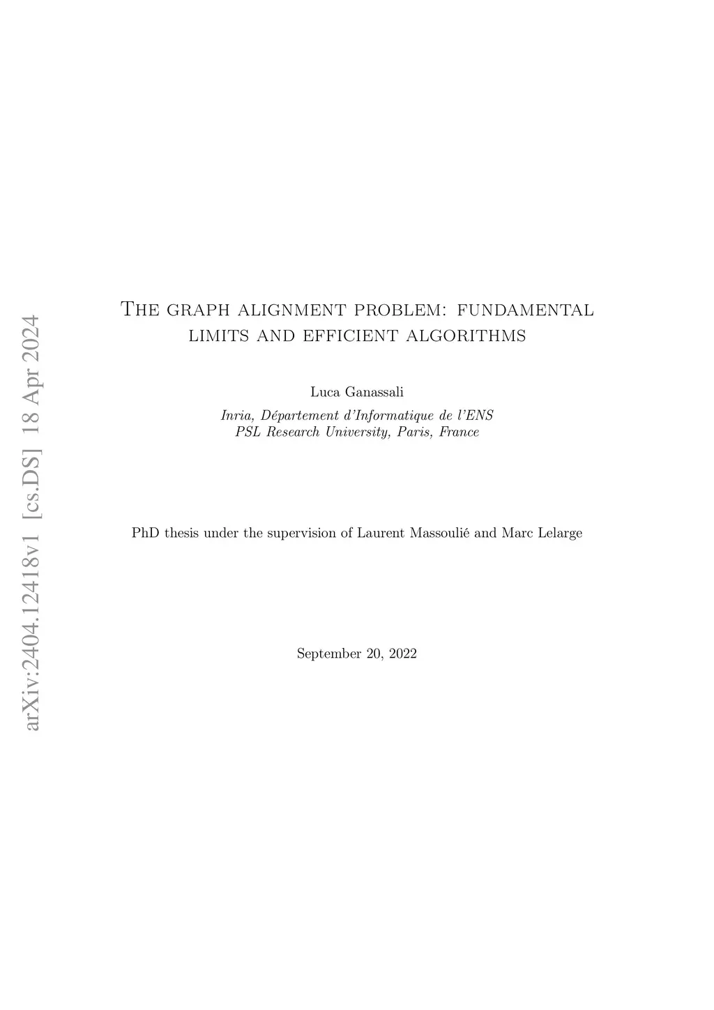 This thesis studies the graph alignment problem, the noisy version of the graph isomorphism problem, which aims to find a matching between the nodes of two graphs which preserves most of the edges. Focusing on the planted version where the graphs are random, we are interested in understanding the fundamental information-theoretical limits for this problem, as well as designing and analyzing algorithms that are able to recover the underlying alignment in the data. For these algorithms, we give some high probability guarantees on the regime in which they succeed or fail.