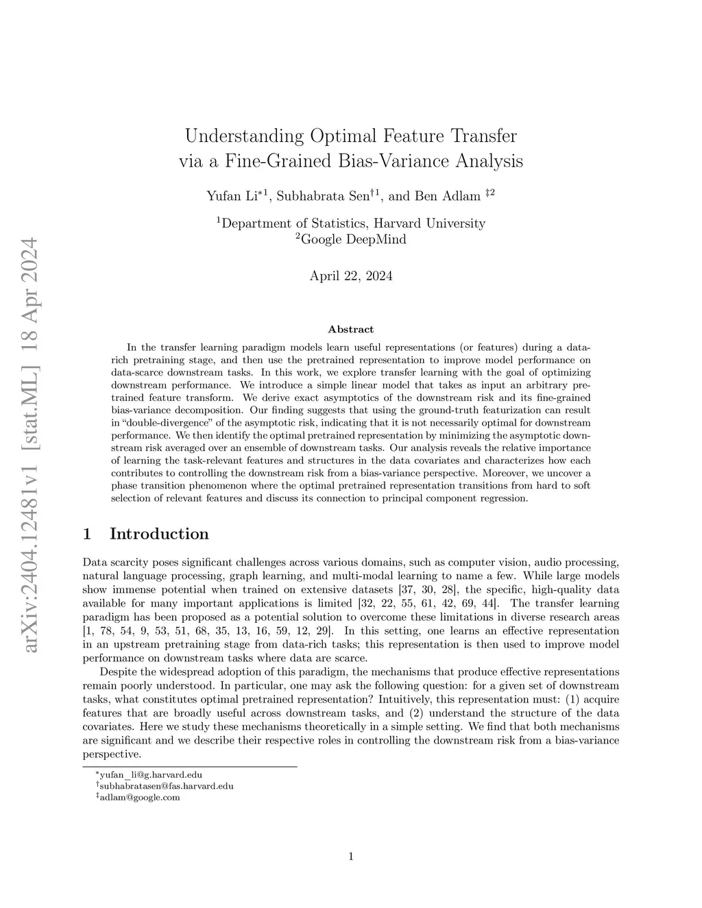 Understanding Optimal Feature Transfer via a Fine-Grained Bias-Variance Analysis