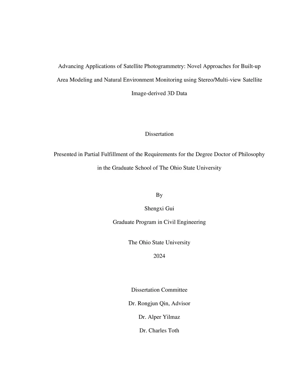 With the development of remote sensing technology in recent decades, spaceborne sensors with sub-meter and meter spatial resolution (Worldview and PlanetScope) have achieved a considerable image quality to generate 3D geospatial data via a stereo matching pipeline. These achievements have significantly increased the data accessibility in 3D, necessitating adapting these 3D geospatial data to analyze human and natural environments. This dissertation explores several novel approaches based on stereo and multi-view satellite image-derived 3D geospatial data, to deal with remote sensing application issues for built-up area modeling and natural environment monitoring, including building model 3D reconstruction, glacier dynamics tracking, and lake algae monitoring. Specifically, the dissertation introduces four parts of novel approaches that deal with the spatial and temporal challenges with satellite-derived 3D data. The first study advances LoD-2 building modeling from satellite-derived Orthophoto and DSMs with a novel approach employing a model-driven workflow that generates building rectangular 3D geometry models. Secondly, we further enhanced our building reconstruction framework for dense urban areas and non-rectangular purposes, we implemented deep learning for unit-level segmentation and introduced a gradient-based circle reconstruction for circular buildings to develop a polygon composition technique for advanced building LoD2 reconstruction. Our third study utilizes high-spatiotemporal resolution PlanetScope satellite imagery for glacier tracking at 3D level in mid-latitude regions. Finally, we proposed a term as "Algal Behavior Function" to refine the quantification of chlorophyll-a concentrations from satellite imagery in water quality monitoring, addressing algae fluctuations and timing discrepancies between satellite observations and field measurements, thus enhancing the precision of underwater algae volume estimates. Overall, this dissertation demonstrates the extensive potential of satellite photogrammetry applications in addressing urban and environmental challenges. It further showcases innovative analytical methodologies that enhance the applicability of adapting stereo and multi-view very high-resolution satellite-derived 3D data. (See full abstract in the document)