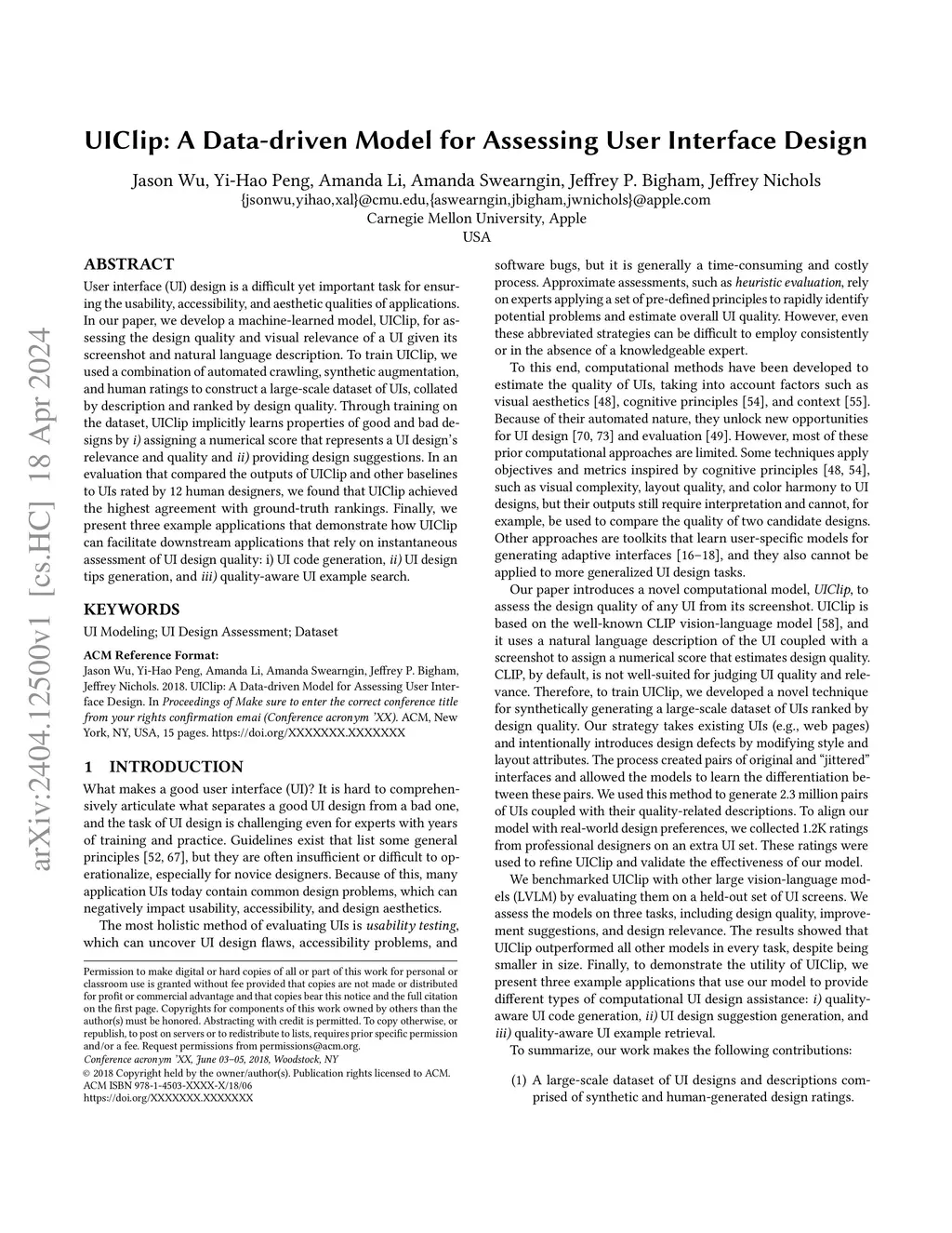 UIClip: A Data-driven Model for Assessing User Interface Design