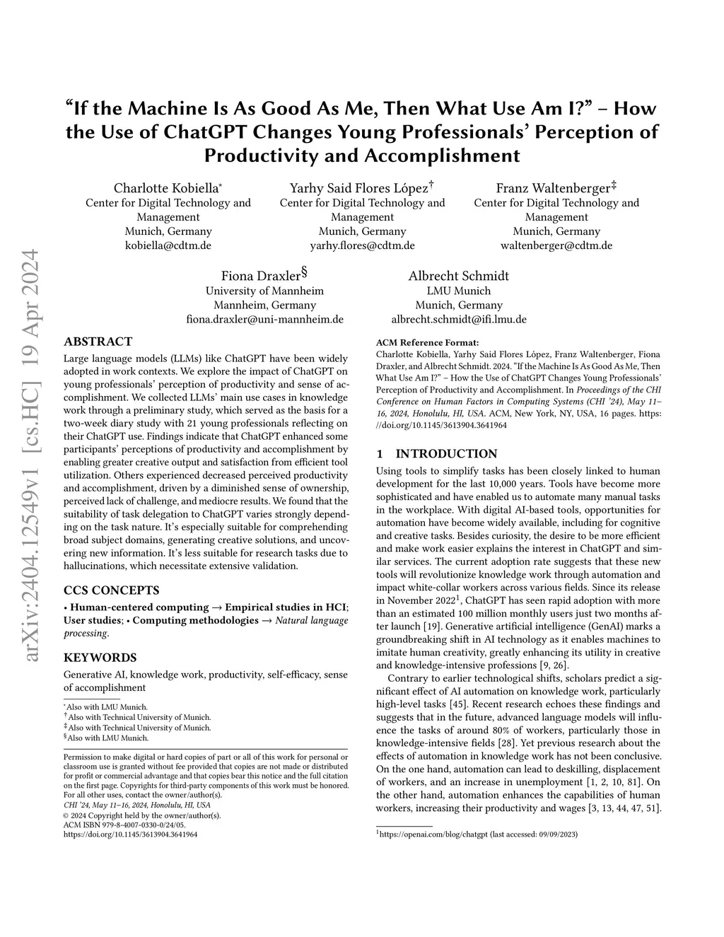 ChatGPT Changes Young Professionals' Perception of Productivity and