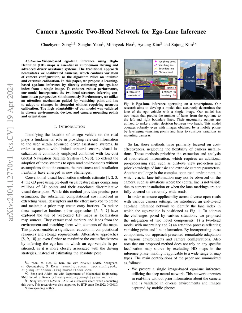 Camera Agnostic Two-Head Network for Ego-Lane Inference
