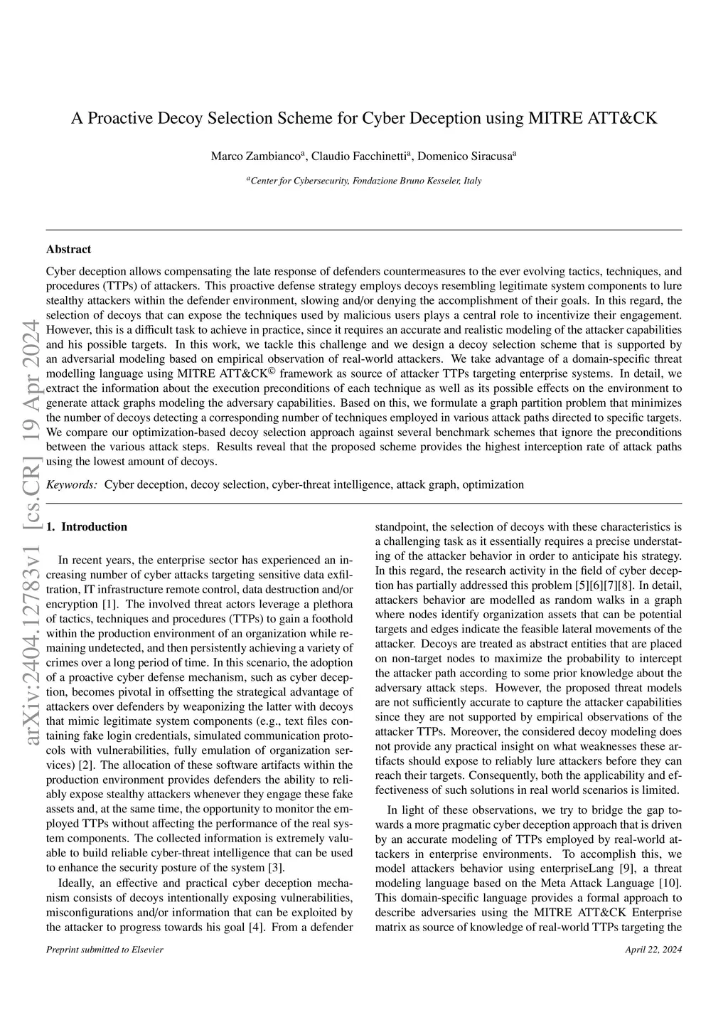 A Proactive Decoy Selection Scheme for Cyber Deception using MITRE