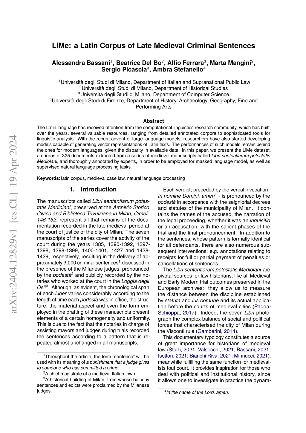 LiMe: a Latin Corpus of Late Medieval Criminal Sentences