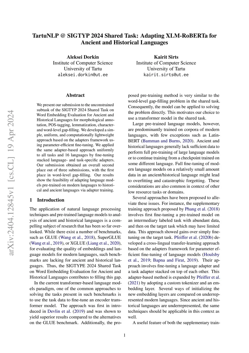 TartuNLP @ SIGTYP 2024 Shared Task: Adapting XLM-RoBERTa for Ancient and