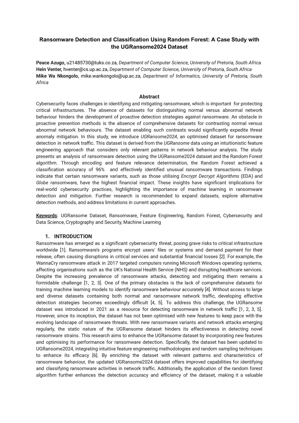Cybersecurity faces challenges in identifying and mitigating ransomware, which is important for protecting critical infrastructures. The absence of datasets for distinguishing normal versus abnormal network behaviour hinders the development of proactive detection strategies against ransomware. An obstacle in proactive prevention methods is the absence of comprehensive datasets for contrasting normal versus abnormal network behaviours. The dataset enabling such contrasts would significantly expedite threat anomaly mitigation. In this study, we introduce UGRansome2024, an optimised dataset for ransomware detection in network traffic. This dataset is derived from the UGRansome data using an intuitionistic feature engineering approach that considers only relevant patterns in network behaviour analysis. The study presents an analysis of ransomware detection using the UGRansome2024 dataset and the Random Forest algorithm. Through encoding and feature relevance determination, the Random Forest achieved a classification accuracy of 96% and effectively identified unusual ransomware transactions. Findings indicate that certain ransomware variants, such as those utilising Encrypt Decrypt Algorithms (EDA) and Globe ransomware, have the highest financial impact. These insights have significant implications for real-world cybersecurity practices, highlighting the importance of machine learning in ransomware detection and mitigation. Further research is recommended to expand datasets, explore alternative detection methods, and address limitations in current approaches.