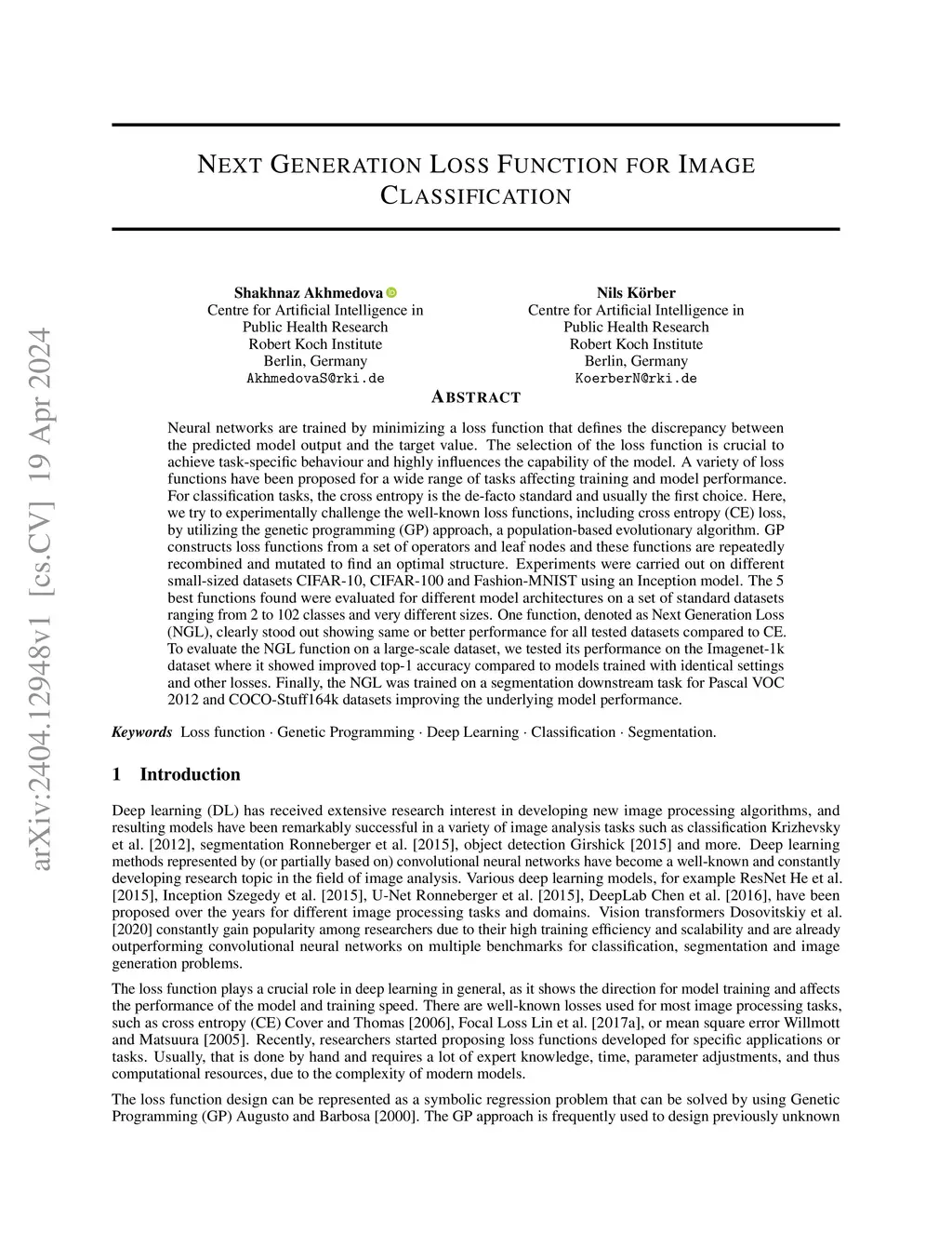 Neural networks are trained by minimizing a loss function that defines the discrepancy between the predicted model output and the target value. The selection of the loss function is crucial to achieve task-specific behaviour and highly influences the capability of the model. A variety of loss functions have been proposed for a wide range of tasks affecting training and model performance. For classification tasks, the cross entropy is the de-facto standard and usually the first choice. Here, we try to experimentally challenge the well-known loss functions, including cross entropy (CE) loss, by utilizing the genetic programming (GP) approach, a population-based evolutionary algorithm. GP constructs loss functions from a set of operators and leaf nodes and these functions are repeatedly recombined and mutated to find an optimal structure. Experiments were carried out on different small-sized datasets CIFAR-10, CIFAR-100 and Fashion-MNIST using an Inception model. The 5 best functions found were evaluated for different model architectures on a set of standard datasets ranging from 2 to 102 classes and very different sizes. One function, denoted as Next Generation Loss (NGL), clearly stood out showing same or better performance for all tested datasets compared to CE. To evaluate the NGL function on a large-scale dataset, we tested its performance on the Imagenet-1k dataset where it showed improved top-1 accuracy compared to models trained with identical settings and other losses. Finally, the NGL was trained on a segmentation downstream task for Pascal VOC 2012 and COCO-Stuff164k datasets improving the underlying model performance.