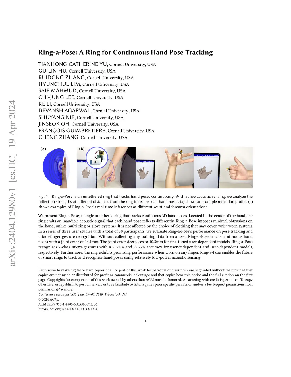 Ring-a-Pose: A Ring for Continuous Hand Pose Tracking