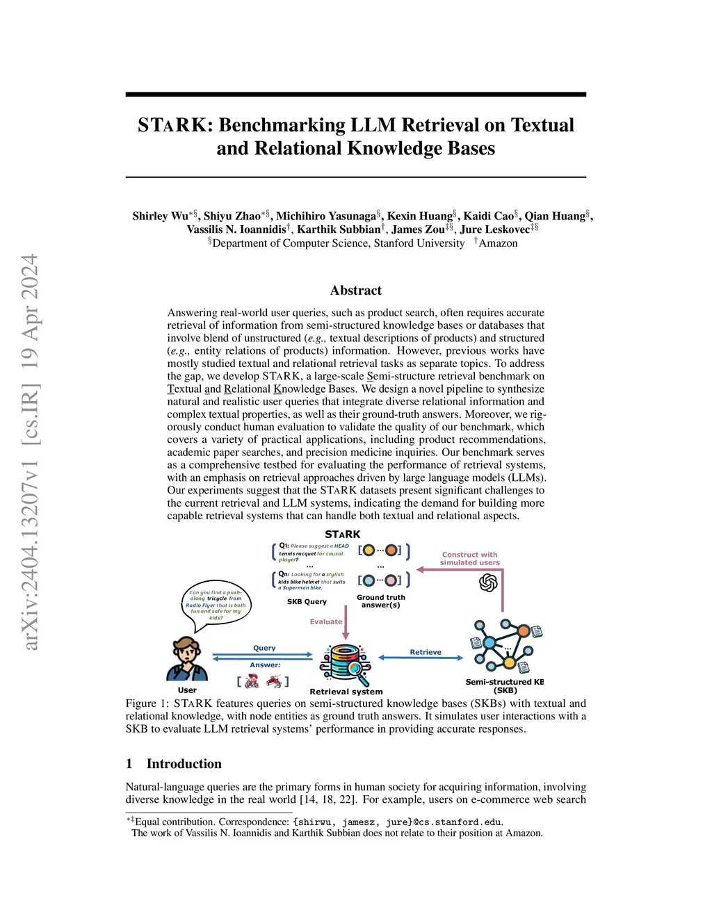 STaRK: Benchmarking LLM Retrieval on Textual and Relational Knowledge