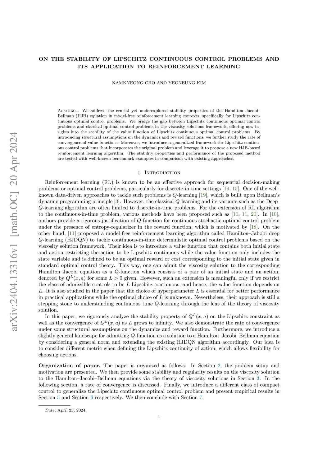 We address the crucial yet underexplored stability properties of the Hamilton--Jacobi--Bellman (HJB) equation in model-free reinforcement learning contexts, specifically for Lipschitz continuous optimal control problems. We bridge the gap between Lipschitz continuous optimal control problems and classical optimal control problems in the viscosity solutions framework, offering new insights into the stability of the value function of Lipschitz continuous optimal control problems. By introducing structural assumptions on the dynamics and reward functions, we further study the rate of convergence of value functions. Moreover, we introduce a generalized framework for Lipschitz continuous control problems that incorporates the original problem and leverage it to propose a new HJB-based reinforcement learning algorithm. The stability properties and performance of the proposed method are tested with well-known benchmark examples in comparison with existing approaches.