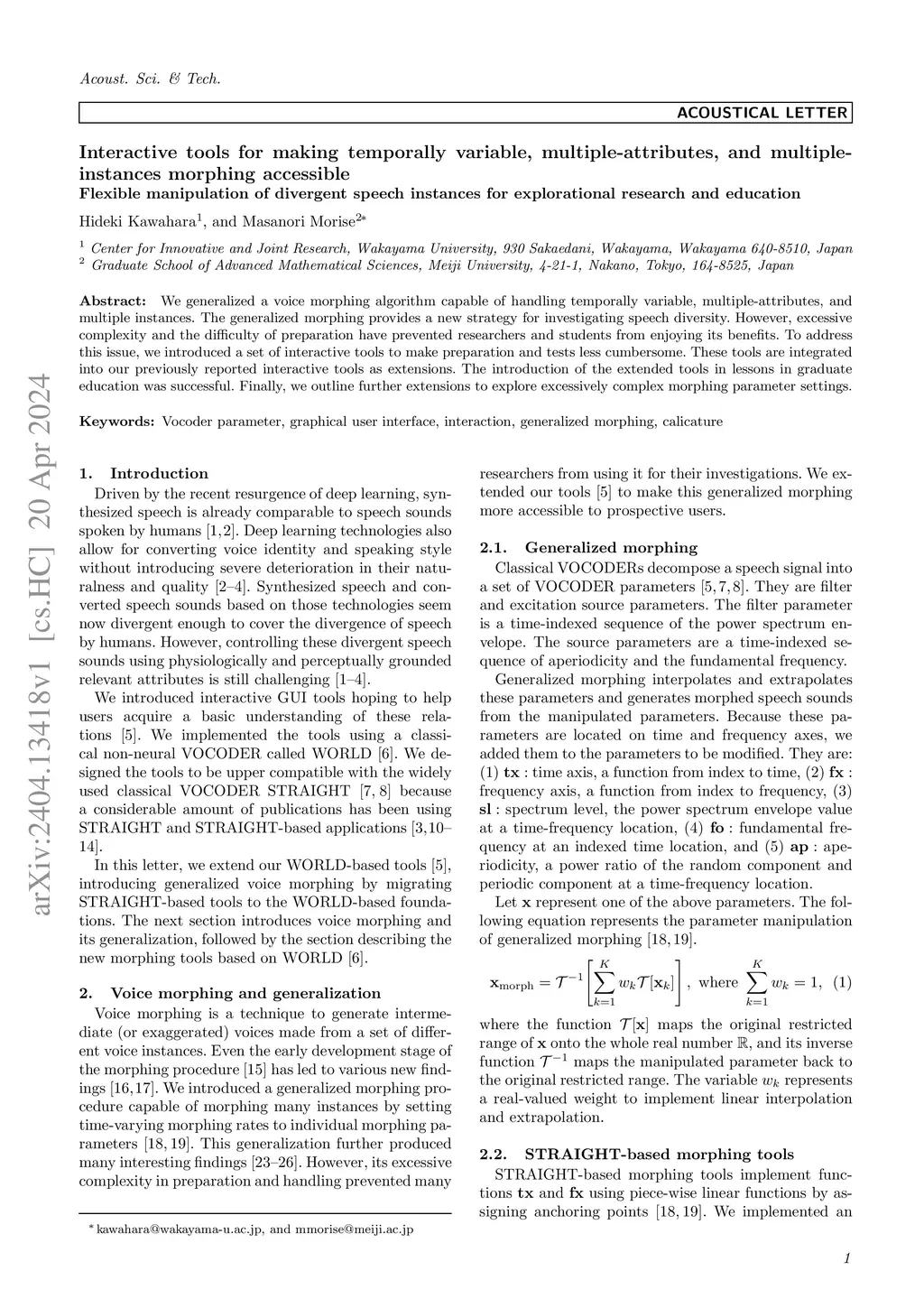 We generalized a voice morphing algorithm capable of handling temporally variable, multiple-attributes, and multiple instances. The generalized morphing provides a new strategy for investigating speech diversity. However, excessive complexity and the difficulty of preparation have prevented researchers and students from enjoying its benefits. To address this issue, we introduced a set of interactive tools to make preparation and tests less cumbersome. These tools are integrated into our previously reported interactive tools as extensions. The introduction of the extended tools in lessons in graduate education was successful. Finally, we outline further extensions to explore excessively complex morphing parameter settings.
