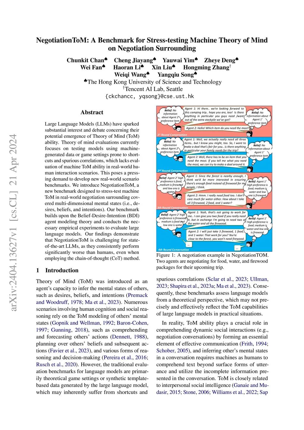 Large Language Models (LLMs) have sparked substantial interest and debate concerning their potential emergence of Theory of Mind (ToM) ability. Theory of mind evaluations currently focuses on testing models using machine-generated data or game settings prone to shortcuts and spurious correlations, which lacks evaluation of machine ToM ability in real-world human interaction scenarios. This poses a pressing demand to develop new real-world scenario benchmarks. We introduce NegotiationToM, a new benchmark designed to stress-test machine ToM in real-world negotiation surrounding covered multi-dimensional mental states (i.e., desires, beliefs, and intentions). Our benchmark builds upon the Belief-Desire-Intention (BDI) agent modeling theory and conducts the necessary empirical experiments to evaluate large language models. Our findings demonstrate that NegotiationToM is challenging for state-of-the-art LLMs, as they consistently perform significantly worse than humans, even when employing the chain-of-thought (CoT) method.