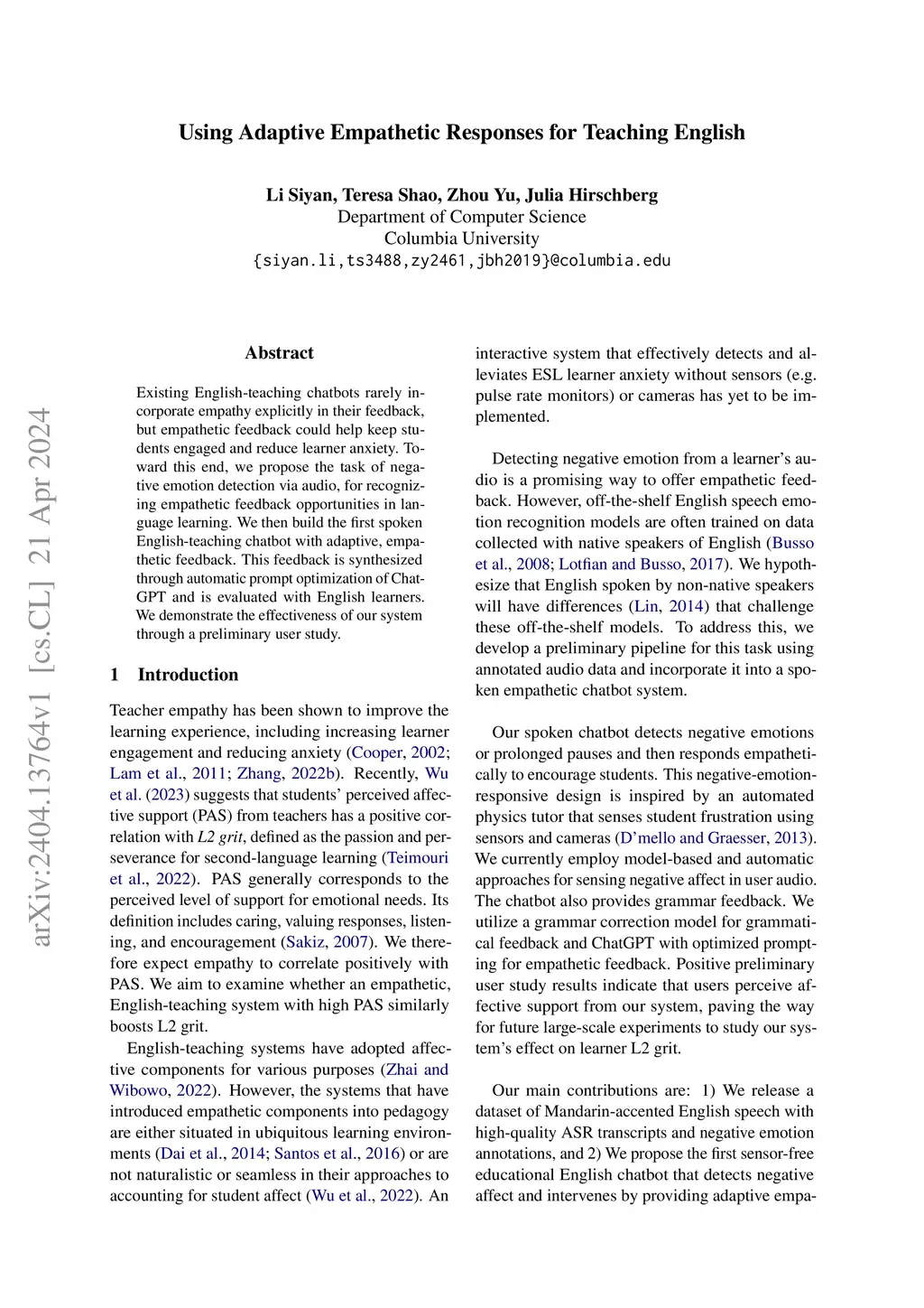 Using Adaptive Empathetic Responses for Teaching English