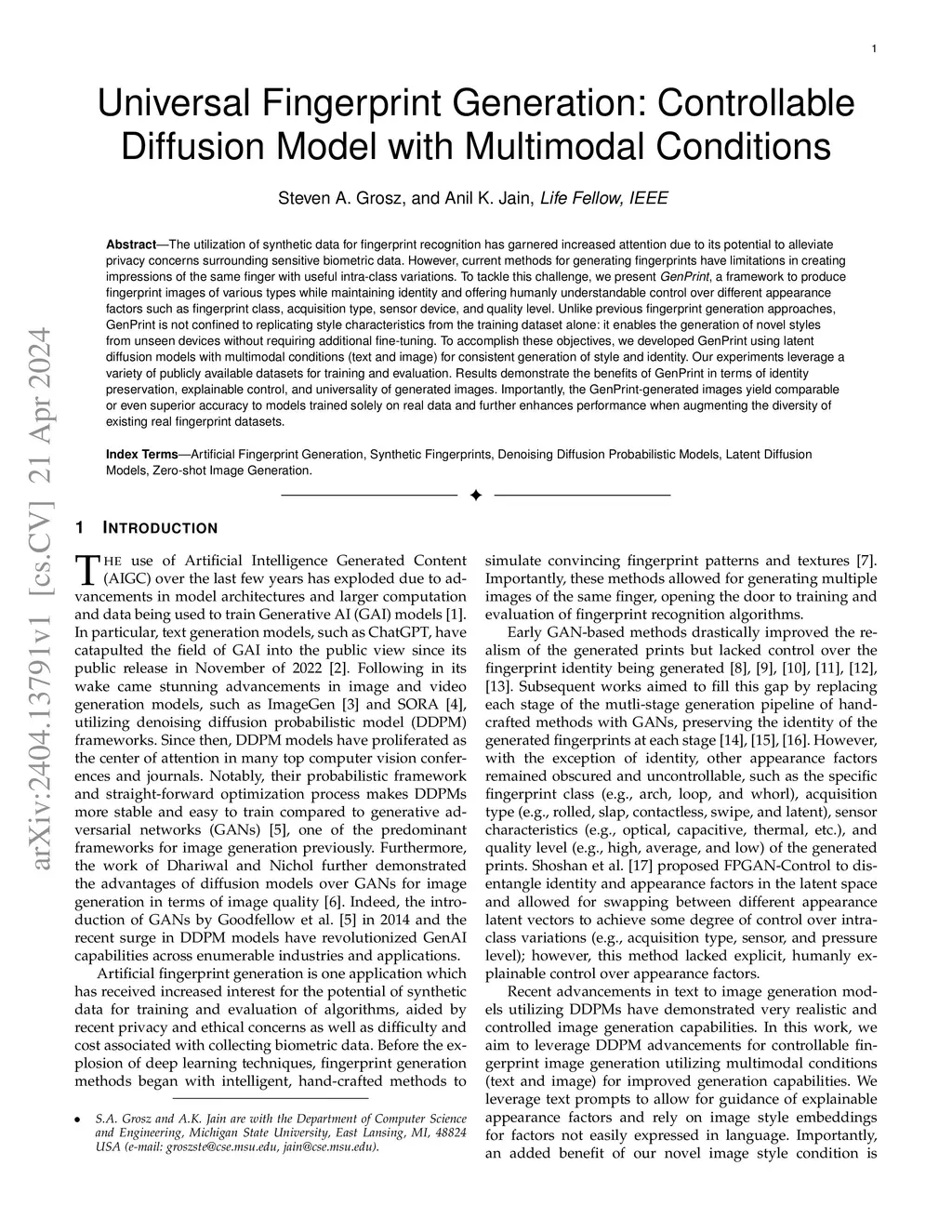 Universal Fingerprint Generation: Controllable Diffusion Model with