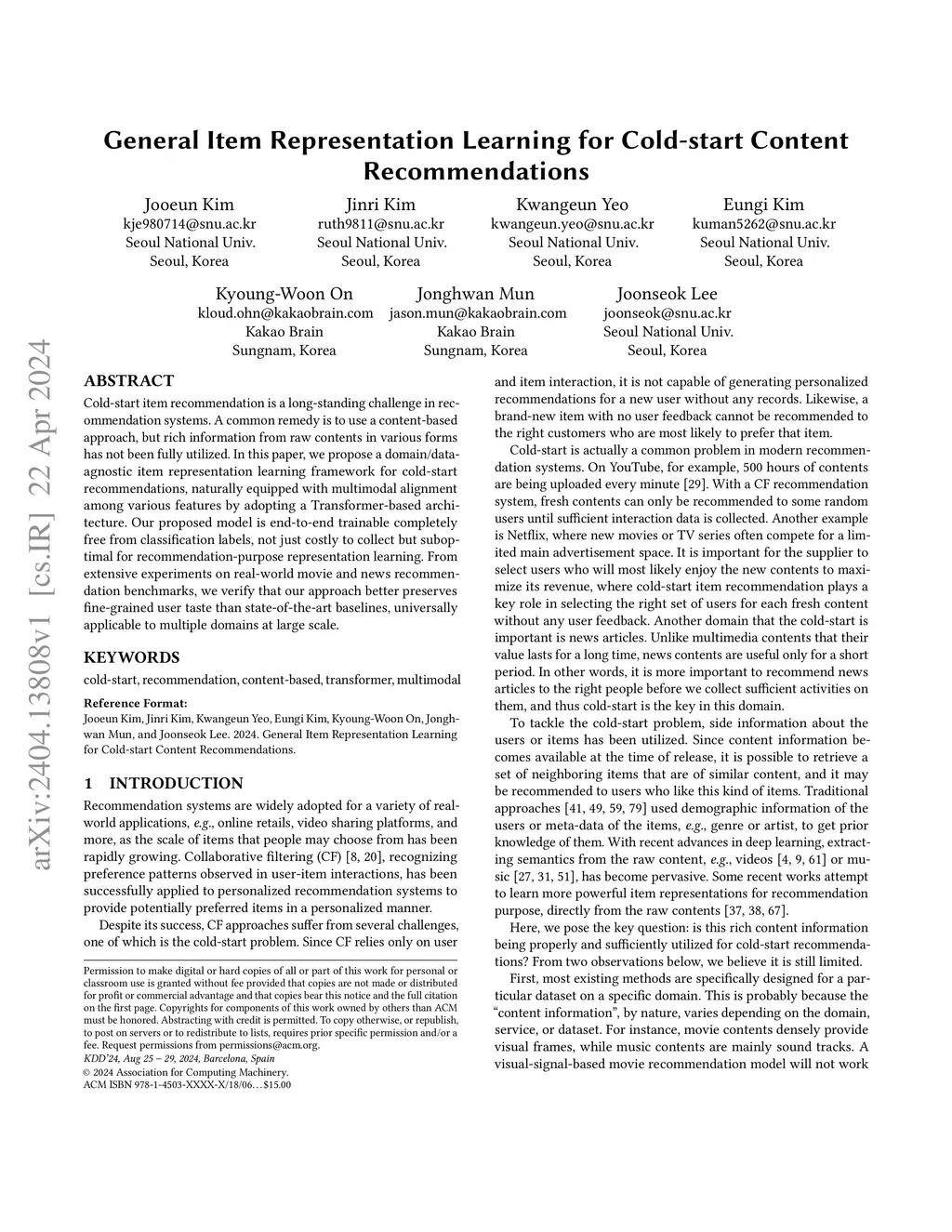 General Item Representation Learning for Cold-start Content