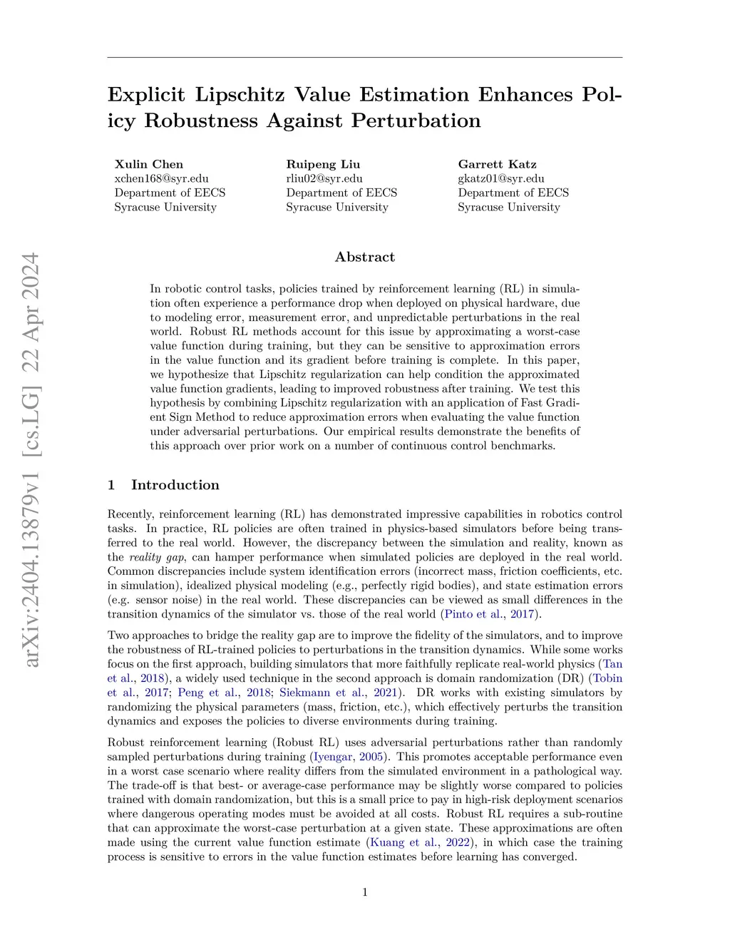 Explicit Lipschitz Value Estimation Enhances Policy Robustness Against
