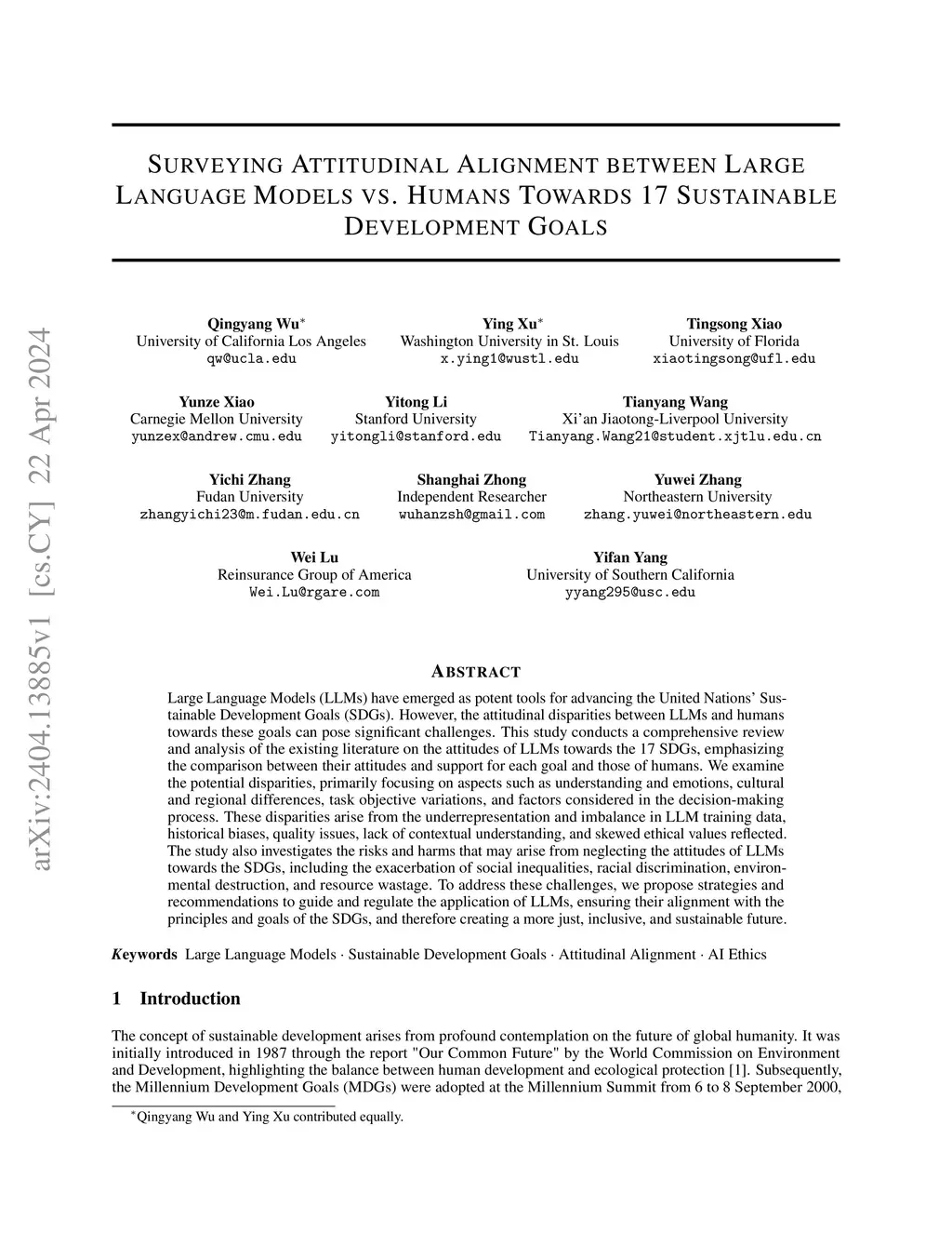 Large Language Models (LLMs) have emerged as potent tools for advancing the United Nations' Sustainable Development Goals (SDGs). However, the attitudinal disparities between LLMs and humans towards these goals can pose significant challenges. This study conducts a comprehensive review and analysis of the existing literature on the attitudes of LLMs towards the 17 SDGs, emphasizing the comparison between their attitudes and support for each goal and those of humans. We examine the potential disparities, primarily focusing on aspects such as understanding and emotions, cultural and regional differences, task objective variations, and factors considered in the decision-making process. These disparities arise from the underrepresentation and imbalance in LLM training data, historical biases, quality issues, lack of contextual understanding, and skewed ethical values reflected. The study also investigates the risks and harms that may arise from neglecting the attitudes of LLMs towards the SDGs, including the exacerbation of social inequalities, racial discrimination, environmental destruction, and resource wastage. To address these challenges, we propose strategies and recommendations to guide and regulate the application of LLMs, ensuring their alignment with the principles and goals of the SDGs, and therefore creating a more just, inclusive, and sustainable future.