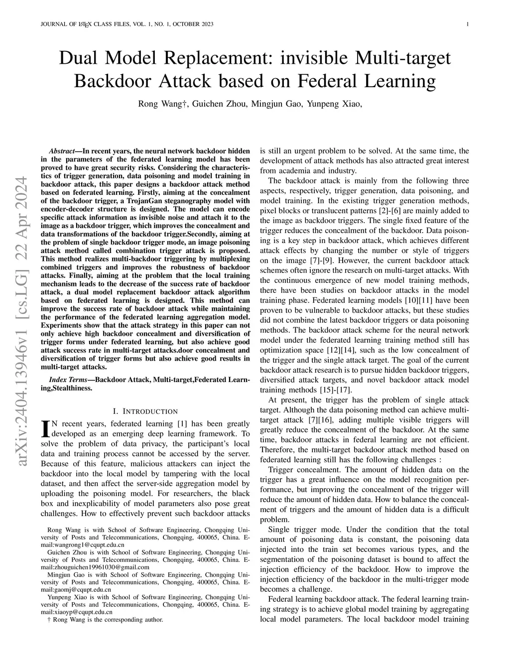 Dual Model Replacement:invisible Multi-target Backdoor Attack based on