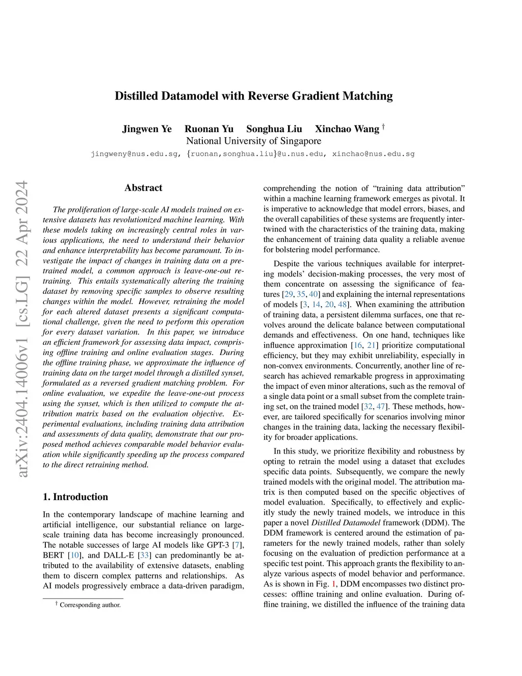 The proliferation of large-scale AI models trained on extensive datasets has revolutionized machine learning. With these models taking on increasingly central roles in various applications, the need to understand their behavior and enhance interpretability has become paramount. To investigate the impact of changes in training data on a pre-trained model, a common approach is leave-one-out retraining. This entails systematically altering the training dataset by removing specific samples to observe resulting changes within the model. However, retraining the model for each altered dataset presents a significant computational challenge, given the need to perform this operation for every dataset variation. In this paper, we introduce an efficient framework for assessing data impact, comprising offline training and online evaluation stages. During the offline training phase, we approximate the influence of training data on the target model through a distilled synset, formulated as a reversed gradient matching problem. For online evaluation, we expedite the leave-one-out process using the synset, which is then utilized to compute the attribution matrix based on the evaluation objective. Experimental evaluations, including training data attribution and assessments of data quality, demonstrate that our proposed method achieves comparable model behavior evaluation while significantly speeding up the process compared to the direct retraining method.