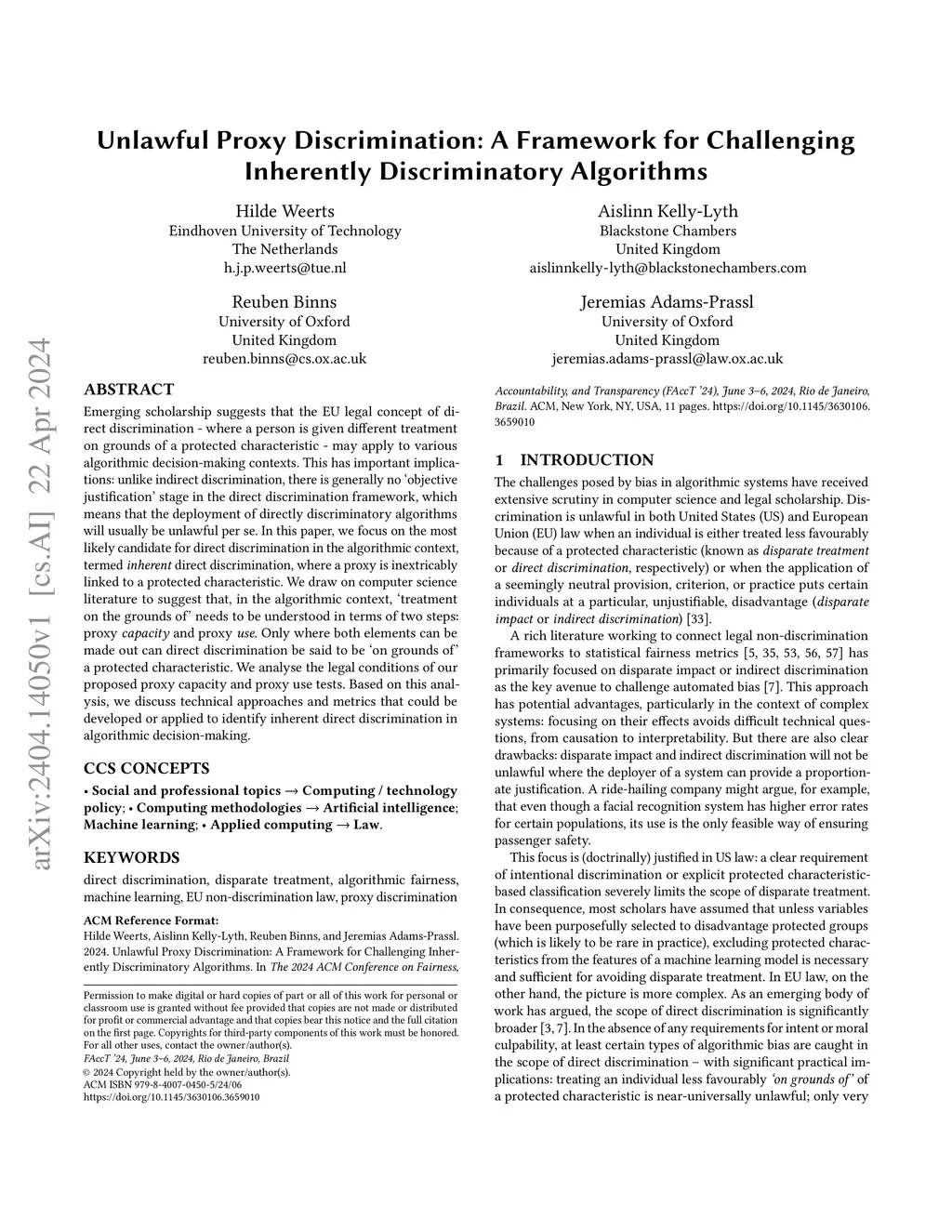 Emerging scholarship suggests that the EU legal concept of direct discrimination - where a person is given different treatment on grounds of a protected characteristic - may apply to various algorithmic decision-making contexts. This has important implications: unlike indirect discrimination, there is generally no óbjective justification' stage in the direct discrimination framework, which means that the deployment of directly discriminatory algorithms will usually be unlawful per se. In this paper, we focus on the most likely candidate for direct discrimination in the algorithmic context, termed inherent direct discrimination, where a proxy is inextricably linked to a protected characteristic. We draw on computer science literature to suggest that, in the algorithmic context, 'treatment on the grounds of' needs to be understood in terms of two steps: proxy capacity and proxy use. Only where both elements can be made out can direct discrimination be said to be `on grounds of' a protected characteristic. We analyse the legal conditions of our proposed proxy capacity and proxy use tests. Based on this analysis, we discuss technical approaches and metrics that could be developed or applied to identify inherent direct discrimination in algorithmic decision-making.
