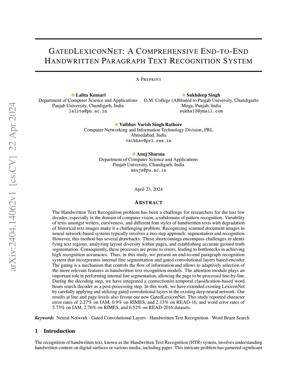 GatedLexiconNet: A Comprehensive End-to-End Handwritten Paragraph Text