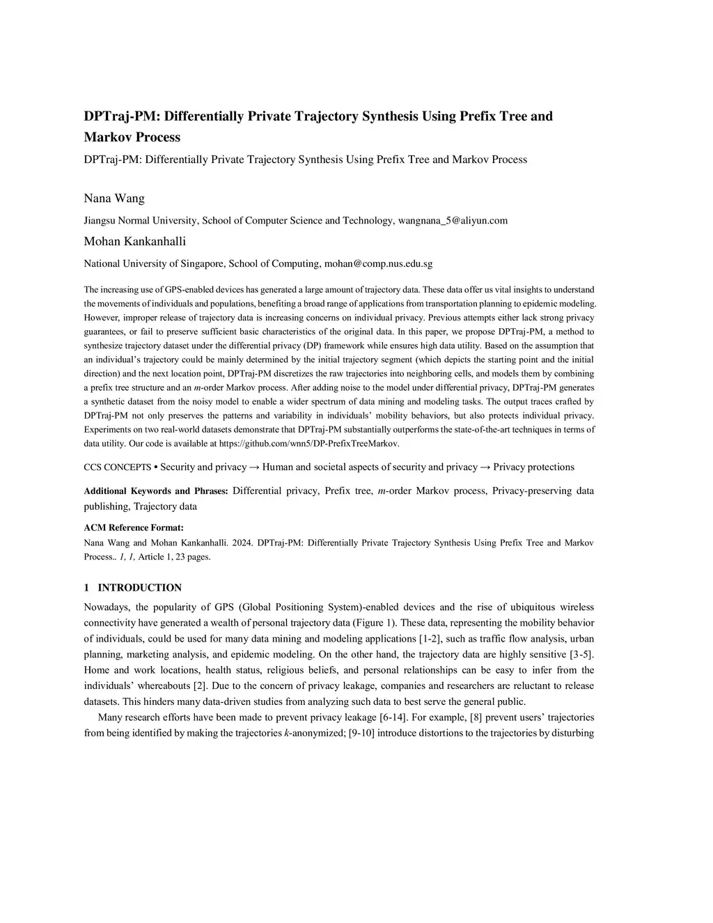 DPTraj-PM: Differentially Private Trajectory Synthesis Using Prefix Tree