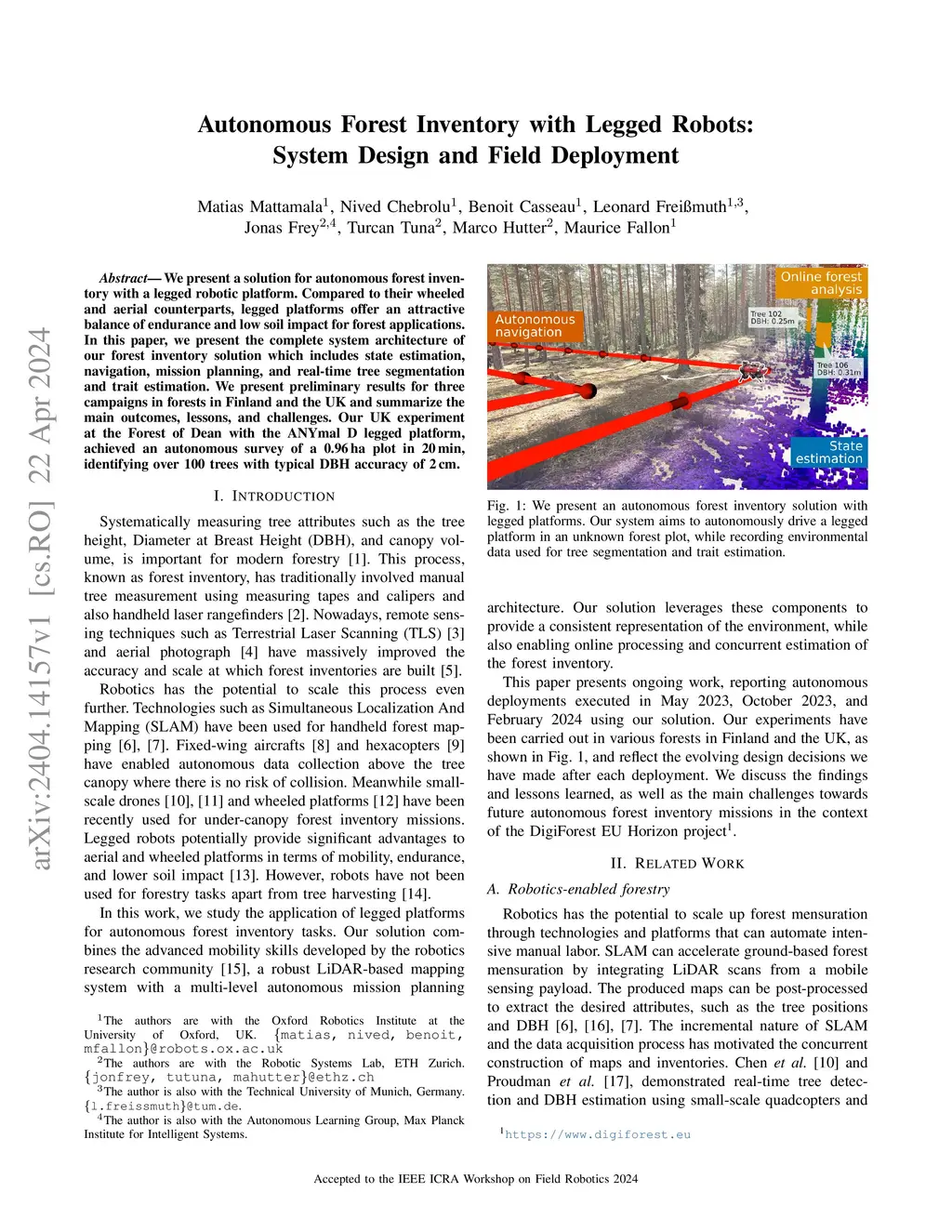 Autonomous Forest Inventory with Legged Robots: System Design and Field