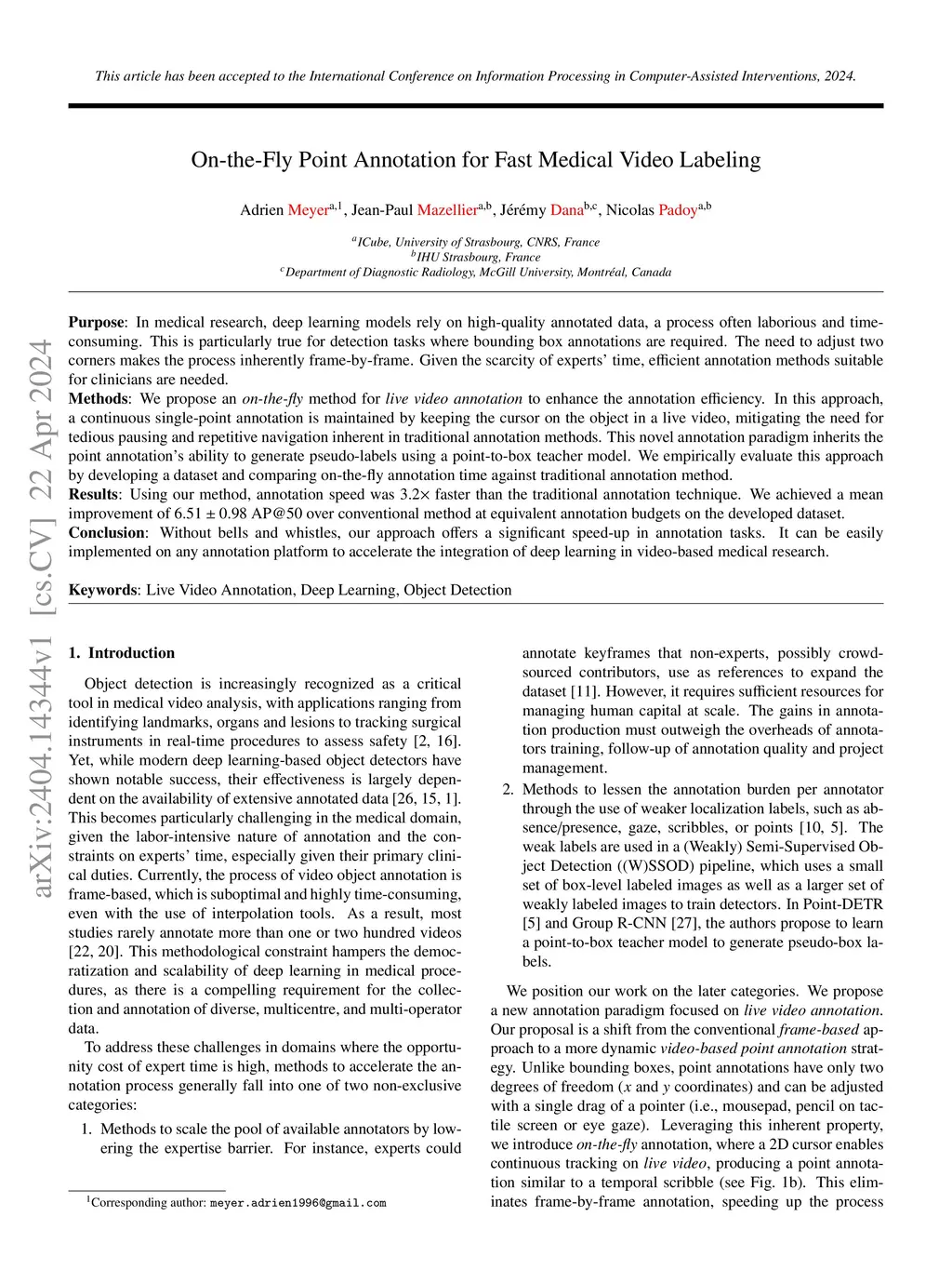 On-the-Fly Point Annotation for Fast Medical Video Labeling