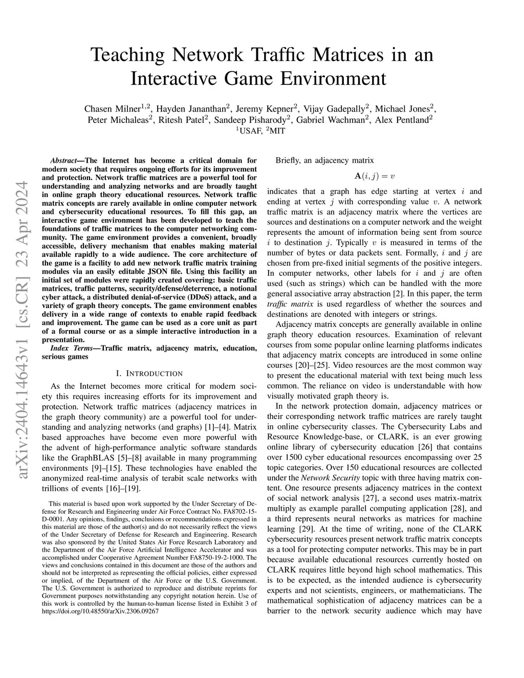 The Internet has become a critical domain for modern society that requires ongoing efforts for its improvement and protection. Network traffic matrices are a powerful tool for understanding and analyzing networks and are broadly taught in online graph theory educational resources. Network traffic matrix concepts are rarely available in online computer network and cybersecurity educational resources. To fill this gap, an interactive game environment has been developed to teach the foundations of traffic matrices to the computer networking community. The game environment provides a convenient, broadly accessible, delivery mechanism that enables making material available rapidly to a wide audience. The core architecture of the game is a facility to add new network traffic matrix training modules via an easily editable JSON file. Using this facility an initial set of modules were rapidly created covering: basic traffic matrices, traffic patterns, security/defense/deterrence, a notional cyber attack, a distributed denial-of-service (DDoS) attack, and a variety of graph theory concepts. The game environment enables delivery in a wide range of contexts to enable rapid feedback and improvement. The game can be used as a core unit as part of a formal course or as a simple interactive introduction in a presentation.