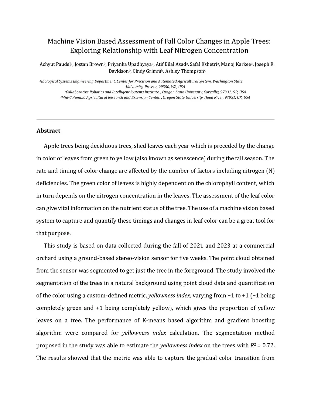 Machine Vision-Based Assessment of Fall Color Changes and its Relationship with Leaf Nitrogen Concentration