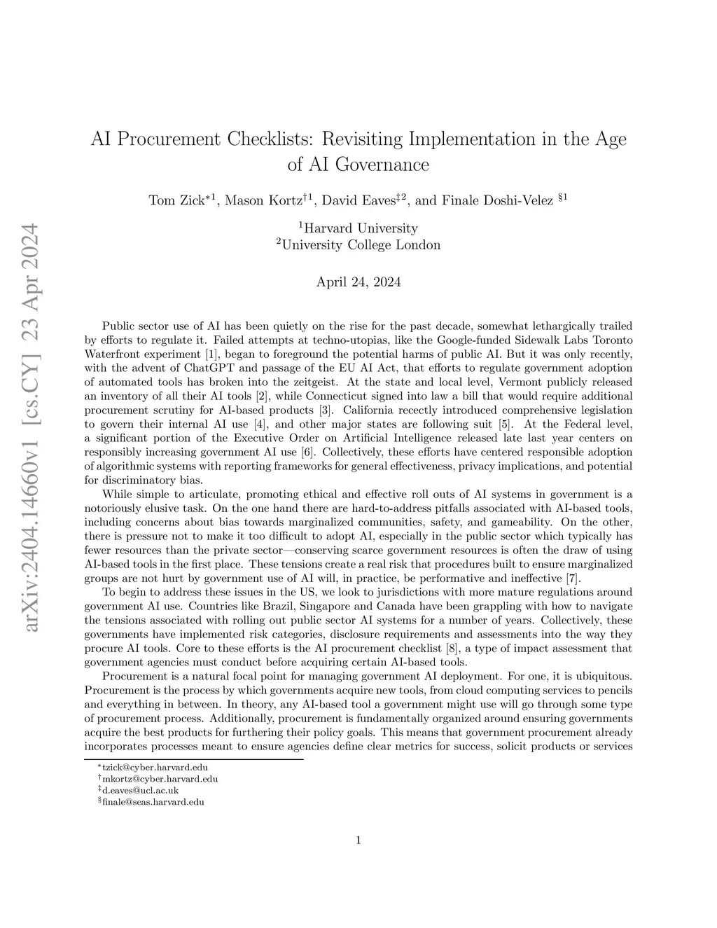 AI Procurement Checklists: Revisiting Implementation in the Age of AI