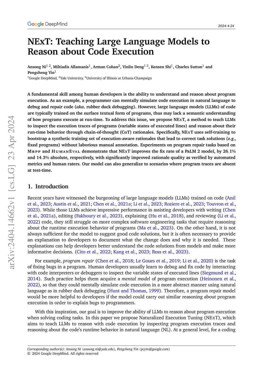 NExT: Teaching Large Language Models to Reason about Code Execution
