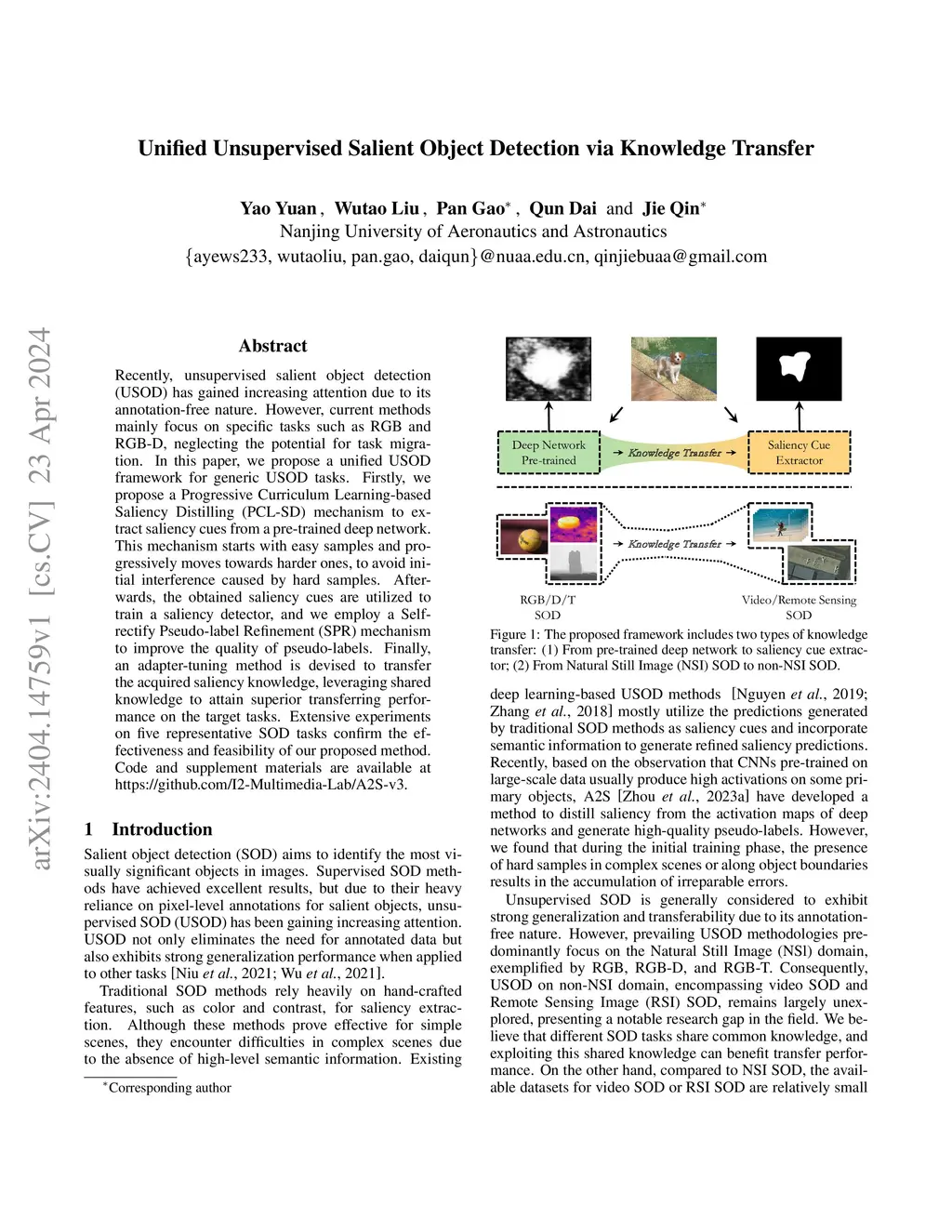 Unified Unsupervised Salient Object Detection via Knowledge Transfer