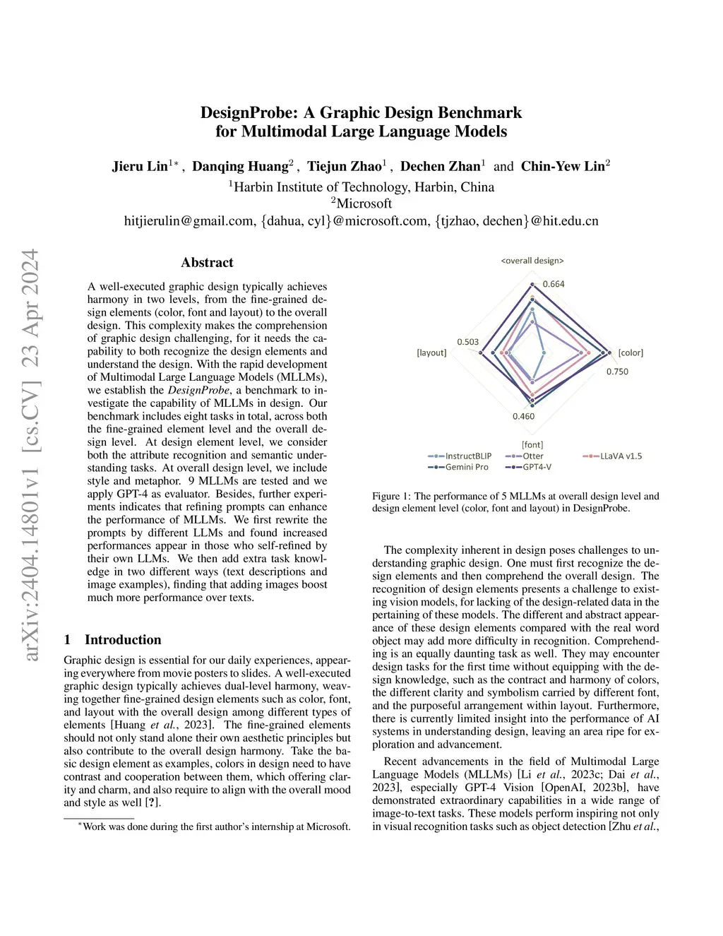 DesignProbe: A Graphic Design Benchmark for Multimodal Large Language