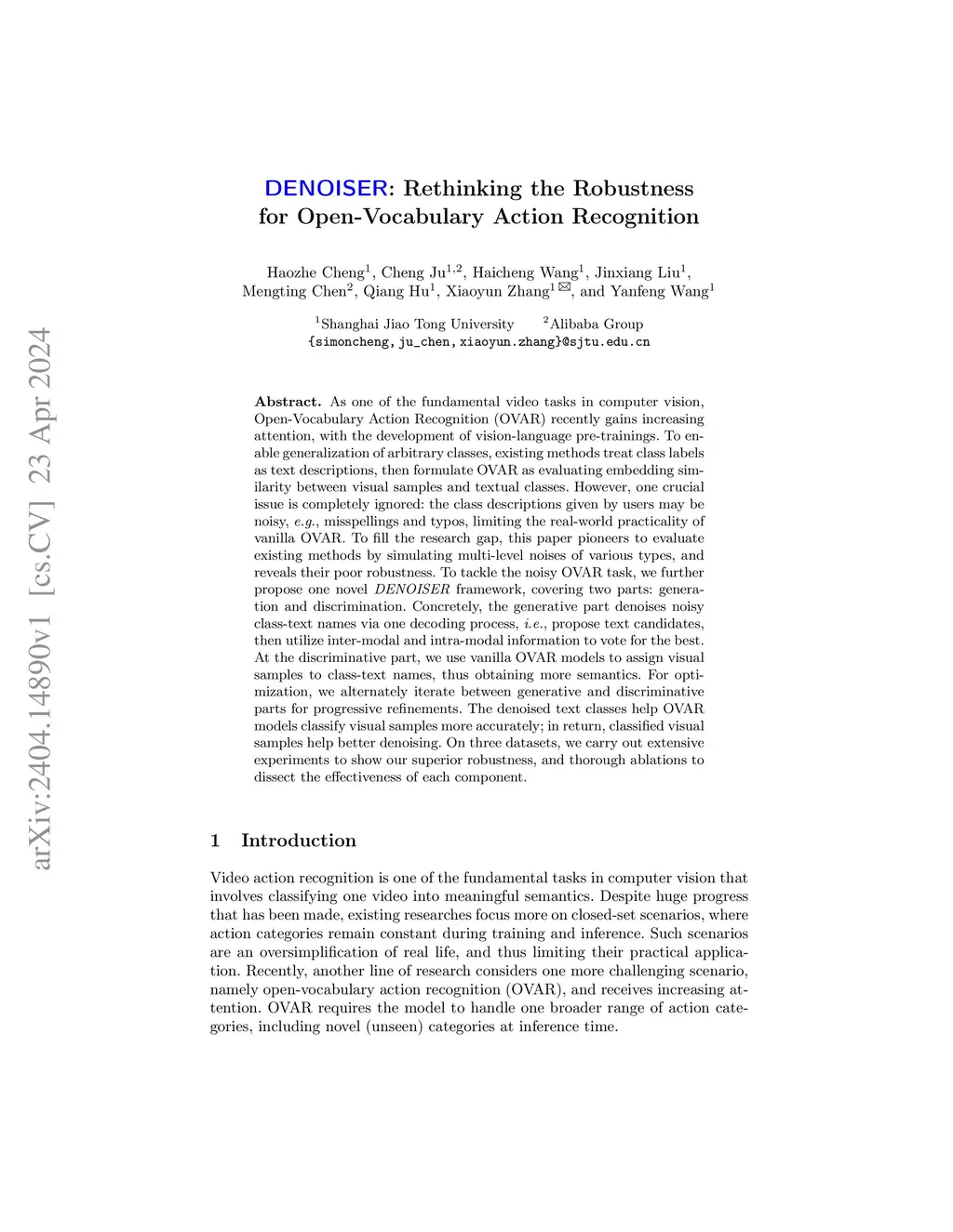 DENOISER: Rethinking the Robustness for Open-Vocabulary Action