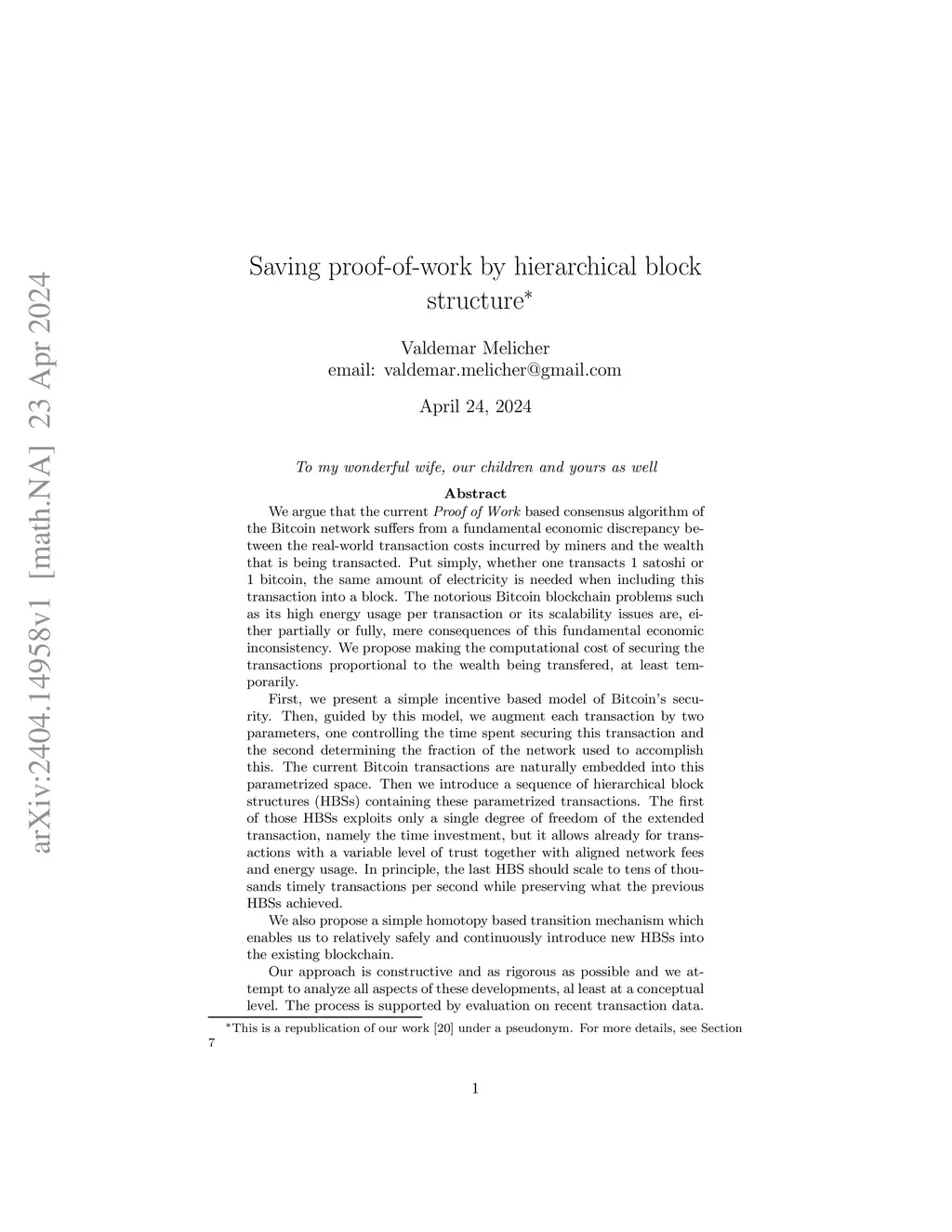 We argue that the current POW based consensus algorithm of the Bitcoin network suffers from a fundamental economic discrepancy between the real world transaction (txn) costs incurred by miners and the wealth that is being transacted. Put simply, whether one transacts 1 satoshi or 1 bitcoin, the same amount of electricity is needed when including this txn into a block. The notorious Bitcoin blockchain problems such as its high energy usage per txn or its scalability issues are, either partially or fully, mere consequences of this fundamental economic inconsistency. We propose making the computational cost of securing the txns proportional to the wealth being transferred, at least temporarily. First, we present a simple incentive based model of Bitcoin's security. Then, guided by this model, we augment each txn by two parameters, one controlling the time spent securing this txn and the second determining the fraction of the network used to accomplish this. The current Bitcoin txns are naturally embedded into this parametrized space. Then we introduce a sequence of hierarchical block structures (HBSs) containing these parametrized txns. The first of those HBSs exploits only a single degree of freedom of the extended txn, namely the time investment, but it allows already for txns with a variable level of trust together with aligned network fees and energy usage. In principle, the last HBS should scale to tens of thousands timely txns per second while preserving what the previous HBSs achieved. We also propose a simple homotopy based transition mechanism which enables us to relatively safely and continuously introduce new HBSs into the existing blockchain. Our approach is constructive and as rigorous as possible and we attempt to analyze all aspects of these developments, al least at a conceptual level. The process is supported by evaluation on recent transaction data.
