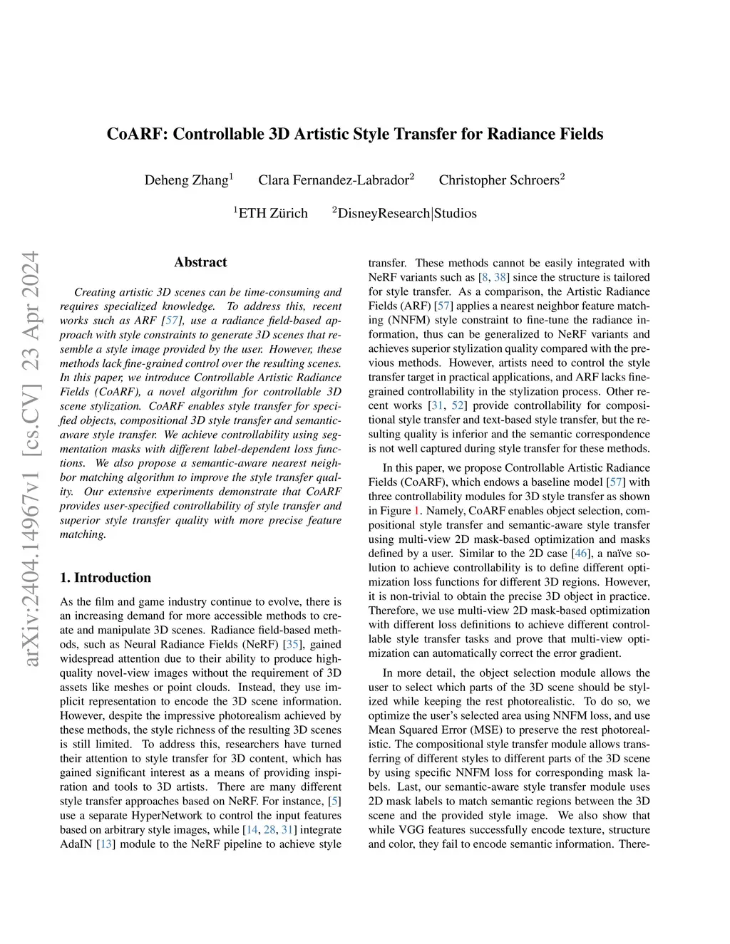 CoARF: Controllable 3D Artistic Style Transfer for Radiance Fields