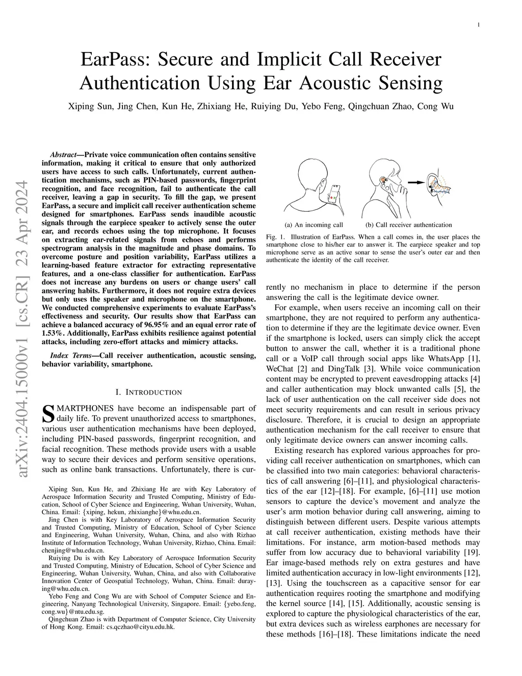 SCR-Auth: Secure Call Receiver Authentication on Smartphones Using Outer Ear Echoes