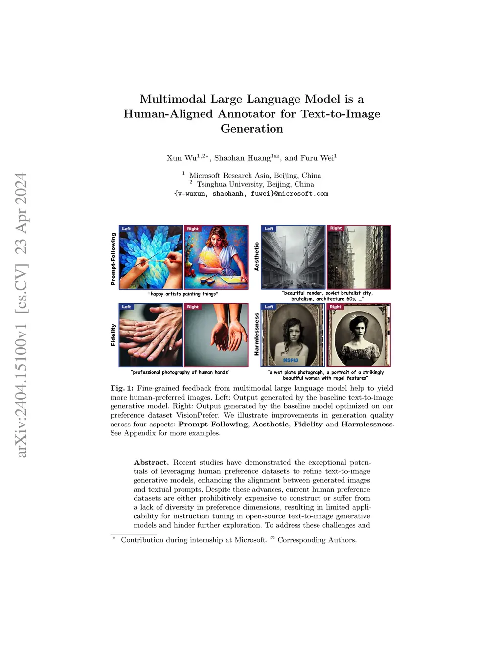 Recent studies have demonstrated the exceptional potentials of leveraging human preference datasets to refine text-to-image generative models, enhancing the alignment between generated images and textual prompts. Despite these advances, current human preference datasets are either prohibitively expensive to construct or suffer from a lack of diversity in preference dimensions, resulting in limited applicability for instruction tuning in open-source text-to-image generative models and hinder further exploration. To address these challenges and promote the alignment of generative models through instruction tuning, we leverage multimodal large language models to create VisionPrefer, a high-quality and fine-grained preference dataset that captures multiple preference aspects. We aggregate feedback from AI annotators across four aspects: prompt-following, aesthetic, fidelity, and harmlessness to construct VisionPrefer. To validate the effectiveness of VisionPrefer, we train a reward model VP-Score over VisionPrefer to guide the training of text-to-image generative models and the preference prediction accuracy of VP-Score is comparable to human annotators. Furthermore, we use two reinforcement learning methods to supervised fine-tune generative models to evaluate the performance of VisionPrefer, and extensive experimental results demonstrate that VisionPrefer significantly improves text-image alignment in compositional image generation across diverse aspects, e.g., aesthetic, and generalizes better than previous human-preference metrics across various image distributions. Moreover, VisionPrefer indicates that the integration of AI-generated synthetic data as a supervisory signal is a promising avenue for achieving improved alignment with human preferences in vision generative models.