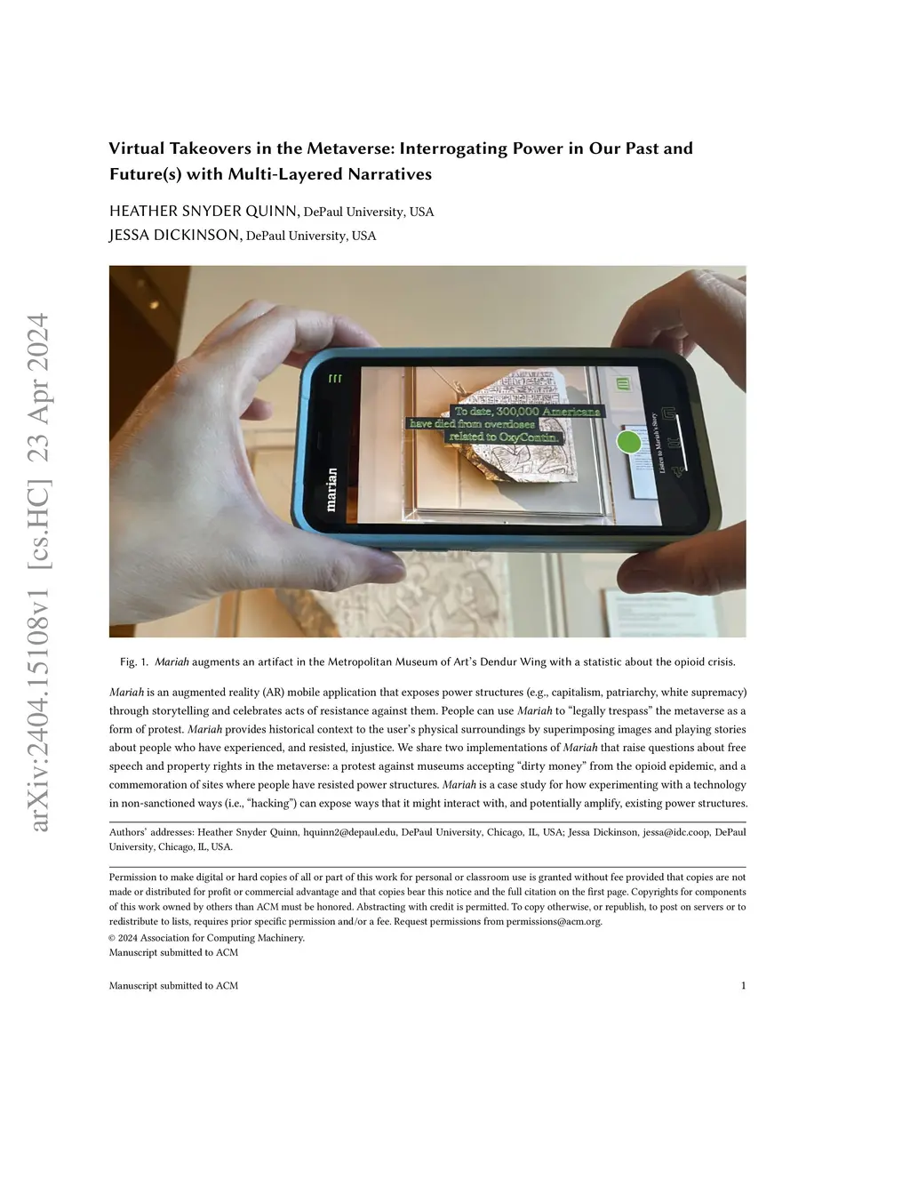 Mariah is an augmented reality (AR) mobile application that exposes power structures (e.g., capitalism, patriarchy, white supremacy) through storytelling and celebrates acts of resistance against them. People can use Mariah to "legally trespass" the metaverse as a form of protest. Mariah provides historical context to the user's physical surroundings by superimposing images and playing stories about people who have experienced, and resisted, injustice. We share two implementations of Mariah that raise questions about free speech and property rights in the metaverse: (1) a protest against museums accepting "dirty money" from the opioid epidemic; and (2) a commemoration of sites where people have resisted power structures. Mariah is a case study for how experimenting with a technology in non-sanctioned ways (i.e., "hacking") can expose ways that it might interact with, and potentially amplify, existing power structures.