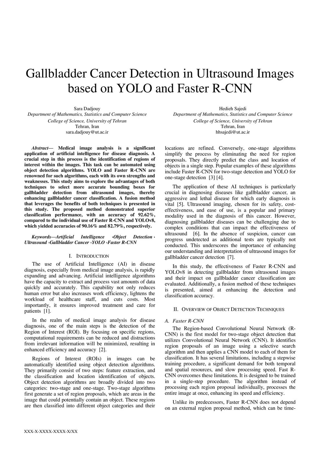 Medical image analysis is a significant application of artificial intelligence for disease diagnosis. A crucial step in this process is the identification of regions of interest within the images. This task can be automated using object detection algorithms. YOLO and Faster R-CNN are renowned for such algorithms, each with its own strengths and weaknesses. This study aims to explore the advantages of both techniques to select more accurate bounding boxes for gallbladder detection from ultrasound images, thereby enhancing gallbladder cancer classification. A fusion method that leverages the benefits of both techniques is presented in this study. The proposed method demonstrated superior classification performance, with an accuracy of 92.62%, compared to the individual use of Faster R-CNN and YOLOv8, which yielded accuracies of 90.16% and 82.79%, respectively.