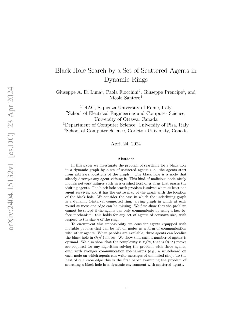 Black Hole Search by a Set of Scattered Agents in Dynamic Rings