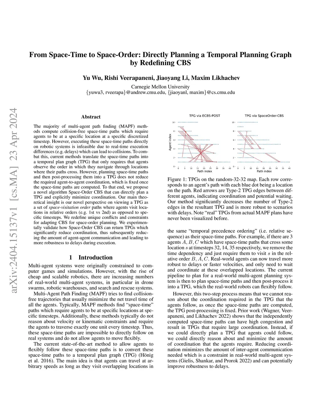 The majority of multi-agent path finding (MAPF) methods compute collision-free space-time paths which require agents to be at a specific location at a specific discretized timestep. However, executing these space-time paths directly on robotic systems is infeasible due to real-time execution differences (e.g. delays) which can lead to collisions. To combat this, current methods translate the space-time paths into a temporal plan graph (TPG) that only requires that agents observe the order in which they navigate through locations where their paths cross. However, planning space-time paths and then post-processing them into a TPG does not reduce the required agent-to-agent coordination, which is fixed once the space-time paths are computed. To that end, we propose a novel algorithm Space-Order CBS that can directly plan a TPG and explicitly minimize coordination. Our main theoretical insight is our novel perspective on viewing a TPG as a set of space-visitation order paths where agents visit locations in relative orders (e.g. 1st vs 2nd) as opposed to specific timesteps. We redefine unique conflicts and constraints for adapting CBS for space-order planning. We experimentally validate how Space-Order CBS can return TPGs which significantly reduce coordination, thus subsequently reducing the amount of agent-agent communication and leading to more robustness to delays during execution.