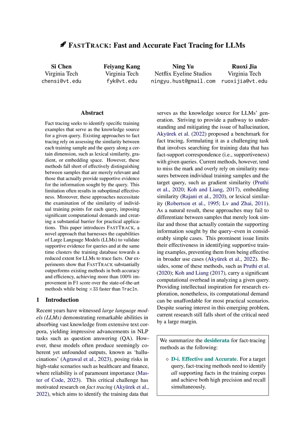 FASTTRACK: Fast and Accurate Fact Tracing for LLMs