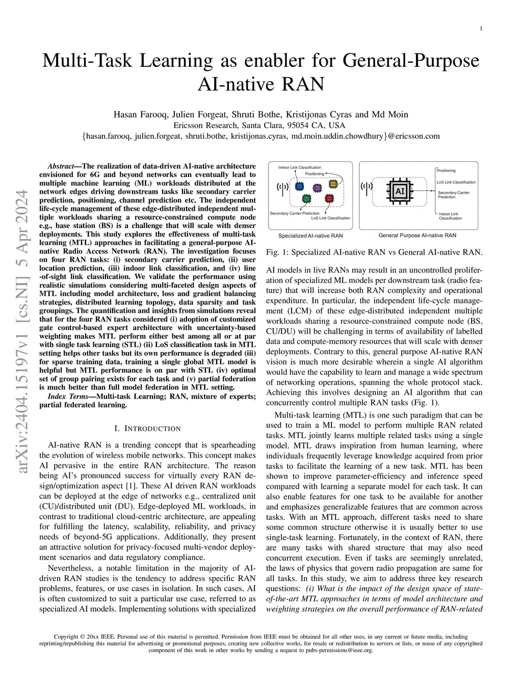 Multi-Task Learning as enabler for General-Purpose AI-native RAN