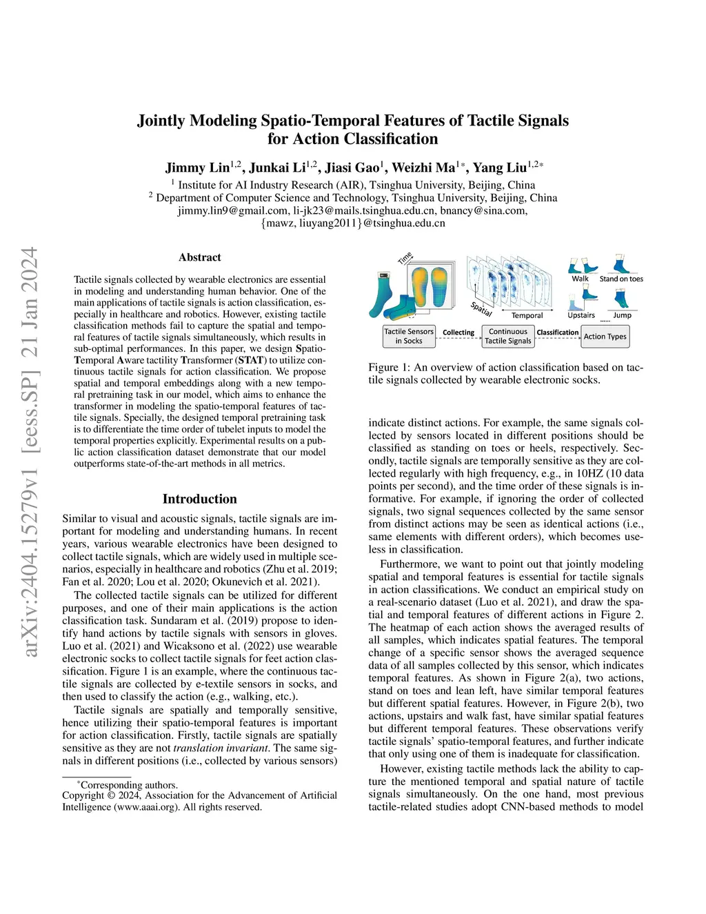 Jointly Modeling Spatio-Temporal Features of Tactile Signals for Action