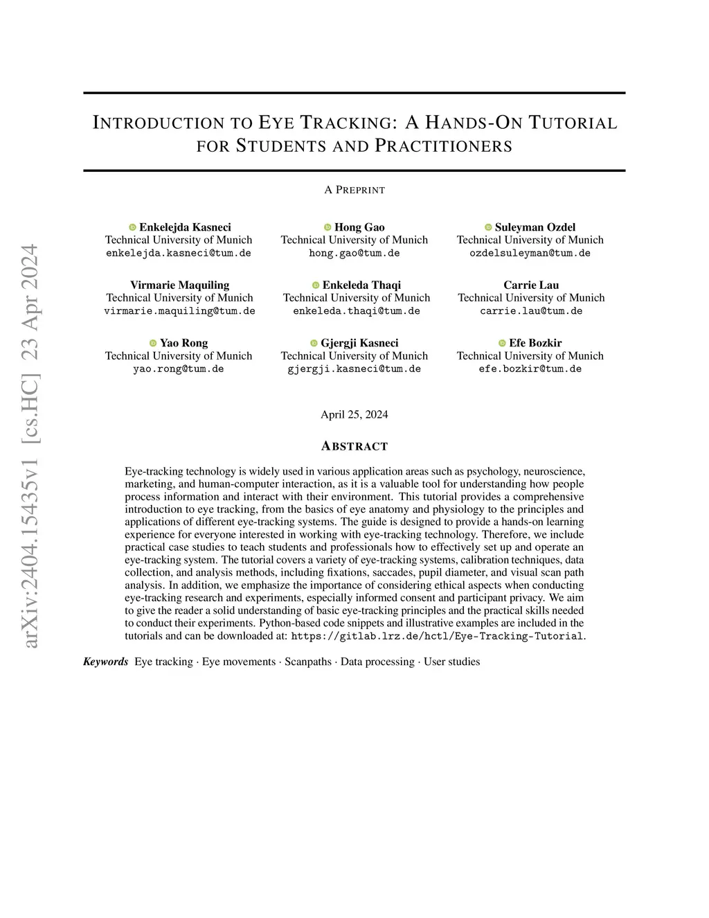 Introduction to Eye Tracking: A Hands-On Tutorial for Students and