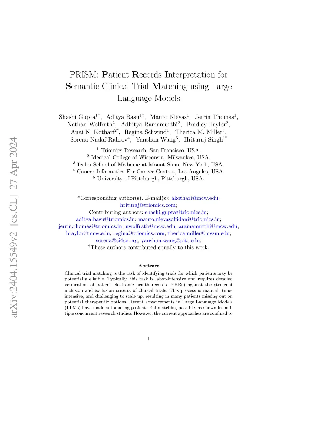 PRISM: Patient Records Interpretation for Semantic Clinical Trial