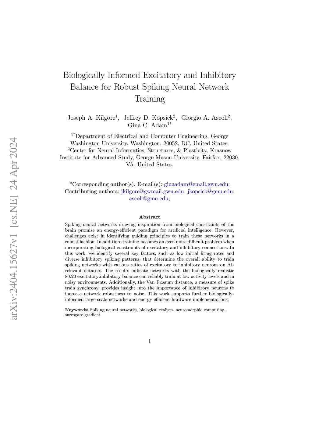Spiking neural networks drawing inspiration from biological constraints of the brain promise an energy-efficient paradigm for artificial intelligence. However, challenges exist in identifying guiding principles to train these networks in a robust fashion. In addition, training becomes an even more difficult problem when incorporating biological constraints of excitatory and inhibitory connections. In this work, we identify several key factors, such as low initial firing rates and diverse inhibitory spiking patterns, that determine the overall ability to train spiking networks with various ratios of excitatory to inhibitory neurons on AI-relevant datasets. The results indicate networks with the biologically realistic 80:20 excitatory:inhibitory balance can reliably train at low activity levels and in noisy environments. Additionally, the Van Rossum distance, a measure of spike train synchrony, provides insight into the importance of inhibitory neurons to increase network robustness to noise. This work supports further biologically-informed large-scale networks and energy efficient hardware implementations.